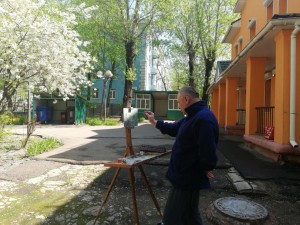 На тему мастер-класса вдохновение было получено прекрасным весенним утром, когда деревья, одно за другим, начали вспыхивать цветом. На территории отделения была выбрана интересная композиция с цветущей вишней, которая не первый год радует глаз в весенний период.