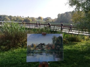 У нас получился неплохой пейзаж. Люди, гуляя по парку, останавливались, чтобы посмотреть, как происходит волшебство, как на холсте вырисовывается картина. Нашим «художникам» очень нравится быть в центре внимания.