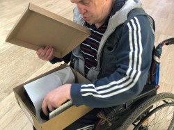 В рамках Индивидуальной программы реабилитации или абилитации инвалида (ИПРА) Андрей, подопечный центра, получил пару летней ортопедической обуви. Специальная обувь необходима мужчине из-за отсутствия пальцев ног, которые пострадали в результате обморожения. Ранее ему предоставлялась пара зимней обуви и трость.